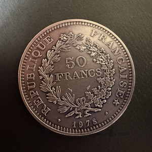 50 Francijas FRANKI, 1978. gads, sudrabs 900, 30 grami, monēta nav bijusi apritē.