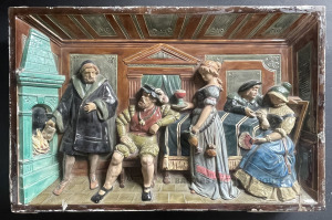 Podiņu krāsns senlaicīgs CENTRĀLAIS DEKORS, iebūvējams mūsdienu mājā kā dekoratīvs elements, 38x59x7 cm, māls, glazūra, Rīgas firma CELMS&BĒMS , ap 1890.-to gadu